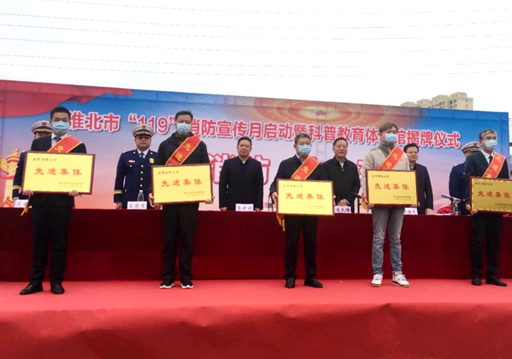 11月5日上午,在淮北市“119”消防宣傳月活動啟動暨市消防科普教育體驗館揭牌儀式上,淮北礦業(yè)集團榮獲“全市消防工作先進集體”稱號。