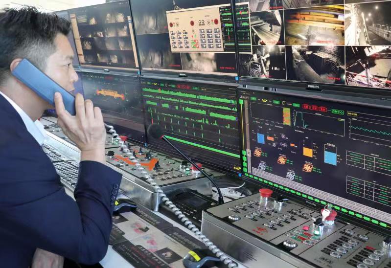 “我是去年10月份從井下機(jī)電檢修工轉(zhuǎn)行到礦地面綜采智能化控制中心當(dāng)操作員的。”張兵介紹道,信湖礦818工作面目前已建成了液壓支架電液控、智能控制、智能集中供液、采煤機(jī)控制、運(yùn)輸設(shè)備控制、視頻監(jiān)控等六大系統(tǒng),實(shí)現(xiàn)了遠(yuǎn)程“一鍵啟停”、自動記憶割煤、故障自診斷、液壓支架自動跟機(jī)移架、工作面人員高精度感知與定位等功能。井下通過每隔50米布置一臺基站,實(shí)現(xiàn)了移動目標(biāo)、控制信息、監(jiān)測信息、視頻信息等穩(wěn)定可靠傳輸。以前該綜采面2名煤機(jī)司機(jī)、6名移架工共8人的活,現(xiàn)在1名地面遠(yuǎn)程控制操作員、3名安全巡視員共4人即可完成。