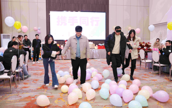 參與此次活動(dòng)的20名單身男青年來(lái)自工程處、工程建設(shè)公司、臨渙礦等單位近年來(lái)新入職高校畢業(yè)生,18名單身女青年來(lái)自淮北市教育、金融、醫(yī)療系統(tǒng)單位。活動(dòng)設(shè)置了“穿越呼啦圈”“搶紙杯”“攜手同行”“踩氣球”“報(bào)紙拔河”等年輕人喜聞樂(lè)見(jiàn)的互動(dòng)小游戲,以小組為單位增添競(jìng)技性,讓每個(gè)人的參與熱情持續(xù)高漲。在現(xiàn)場(chǎng)主持人的引導(dǎo)下,游戲“熱身”產(chǎn)生了很好的效果,男女青年從陌生到熟絡(luò),迅速打成一片,紛紛敞開(kāi)心扉,大膽展示自己、表達(dá)想法,整個(gè)活動(dòng)氛圍輕松愉悅,充滿(mǎn)了歡聲笑語(yǔ)。