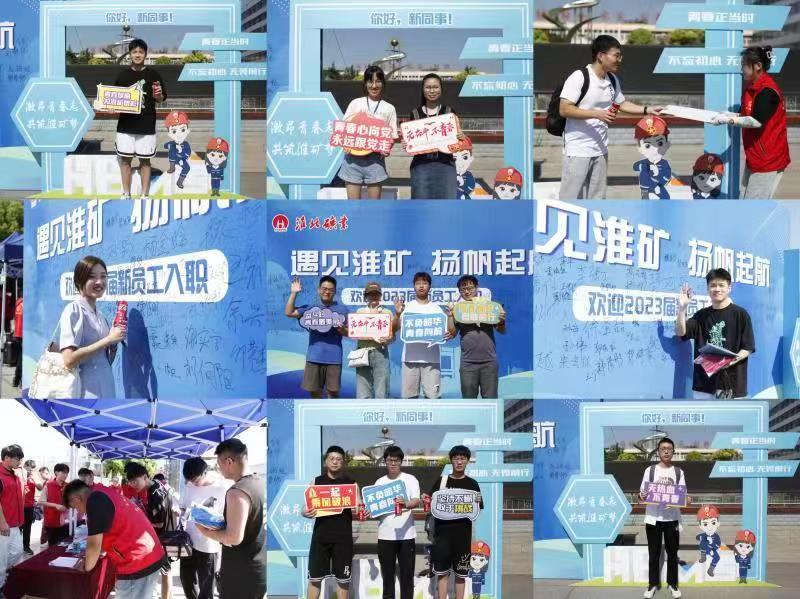 一周前,風塵仆仆的高校畢業生們來到報到現場。烈日下,醒目的標語——“遇見淮礦,揚帆起航”,定制姓名的可樂、精致齊全的“清涼大禮包”、印有企業logo的文化衫,“一站式”服務,留存專屬的青春記憶。
