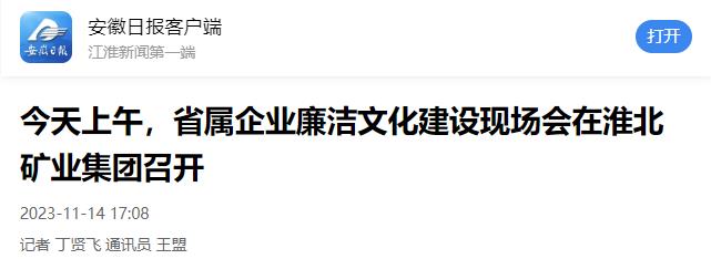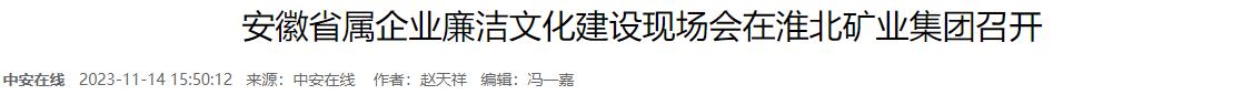 本報訊(記者 丁賢飛 通訊員 王盟)11月14日,省屬企業(yè)廉潔文化建設(shè)現(xiàn)場會在淮北礦業(yè)集團召開。