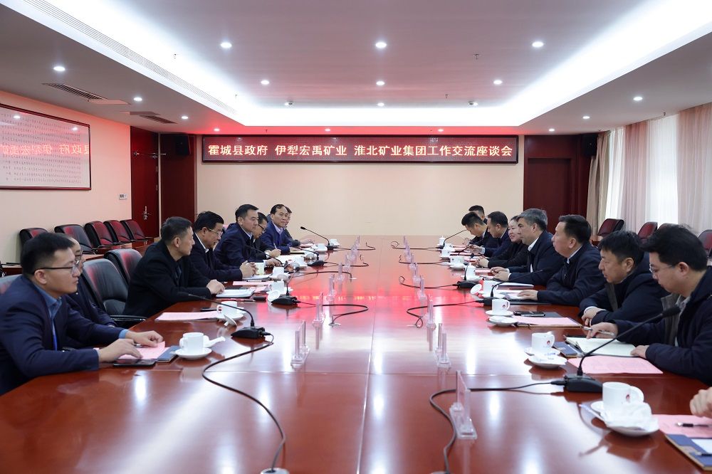 1月7日,淮北礦業(yè)集團(tuán)與新疆伊犁霍城縣政府、伊犁宏禹礦業(yè)舉行工作交流座談會。淮北礦業(yè)集團(tuán)黨委副書記、總經(jīng)理孫方,集團(tuán)黨委常委、淮北礦業(yè)副總經(jīng)理邱丹;霍城縣縣長艾斯克爾·阿布都維力,霍城縣常務(wù)副縣長劉進(jìn)財(cái);伊犁宏禹礦業(yè)董事長黃莉,以及相關(guān)部門負(fù)責(zé)人等參加座談會。