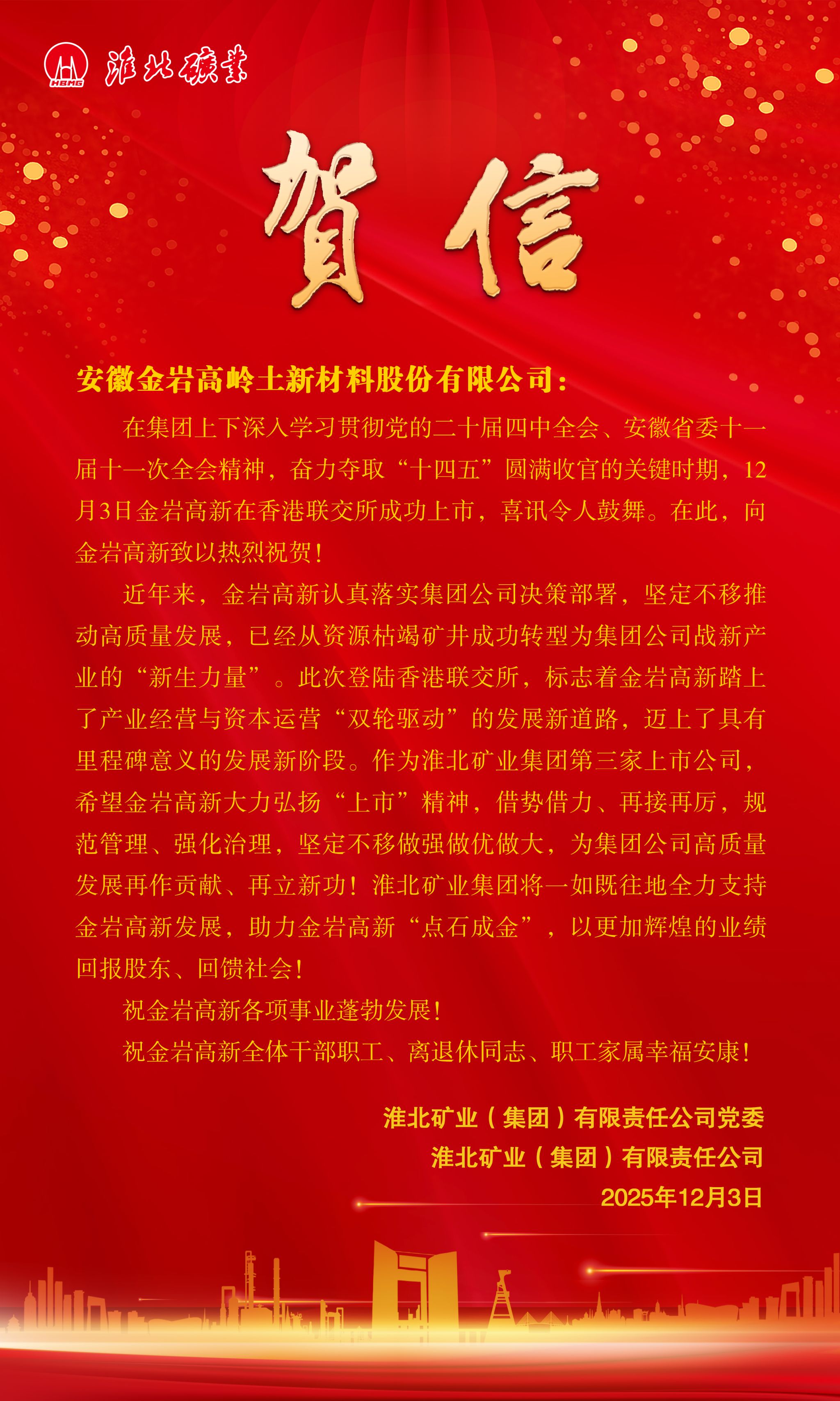 【賀信】淮北礦業集團給金巖高新上市的賀信